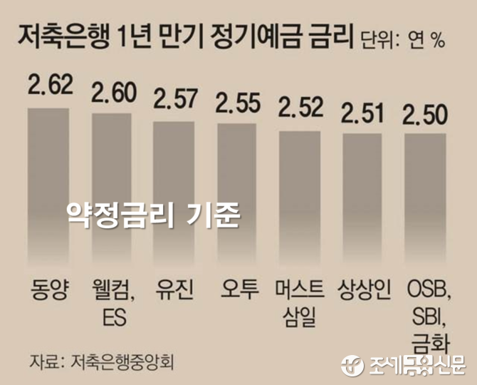 SBI저축은행은 이달 2일 수신상품 금리를 일제히 0.30%p 인상하면서 12개월 만기 기준 복리 정기예금 금리는 최고 연 2.60%로 올라갔다. OK저축은행은 박세리 인비테이셔널 개최를 기념한 정기예금(연 2.5%)을 2천억원 한도로 내놨다.