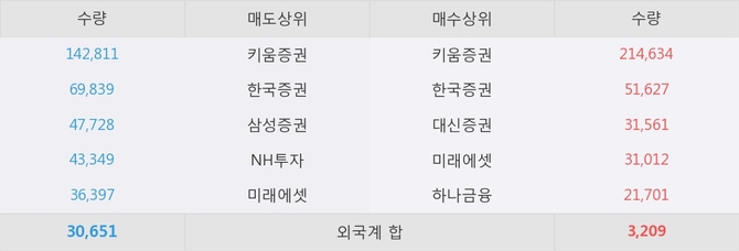 이 시간 한국증권이 매수창구상위에 올라있는 종목은 이 종목 이외에도 이라이콤, 포스코인터내셔널 등이 있다.