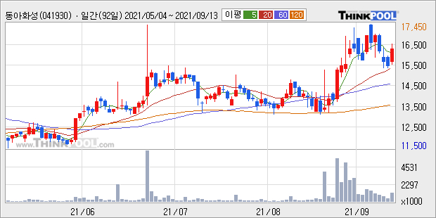 동아화성은 2020년 매출액 2618억원과 영업이익 133억원을 기록했다. 전년대비 매출은 -9.3% 하락했고, 영업이익은 23.6% 상승했다. 이 회사의 매출액 증감률과 영업이익 증감률은 각각 코스닥 하위 33%, 상위 38%에 해당된다.