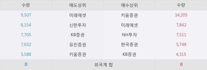 이 시각 주요 거래원은 미래에셋, 신한투자, KB증권 등이 매도 상위 창구에 자리하고 있다.