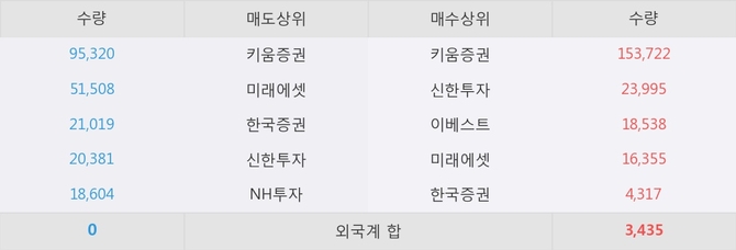 이 시각 주요 거래원은 미래에셋, 키움증권, 신한투자 등이 매수 상위 창구에 자리하고 있다.