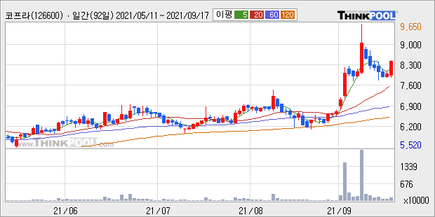 코프라는 2020년 매출액 1509억원과 영업이익 115억원을 기록했다. 전년대비 매출은 -17.5% 하락했고, 영업이익은 26.3% 상승했다. 이 회사의 매출액 증감률과 영업이익 증감률은 각각 코스닥 하위 22%, 상위 37%에 해당된다.