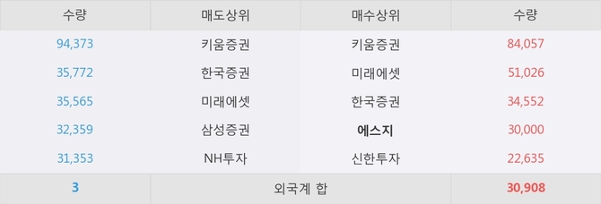 거래원 동향은 에스지, 미래에셋이 매수 상위 목록에 나타나고 있다.