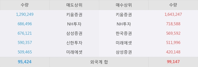 거래원 동향은 NH투자, 미래에셋, 삼성증권 등이 매수 상위 목록에 나타나고 있다.