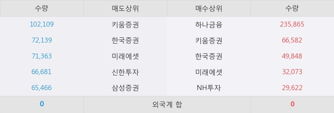 거래원 동향은 하나금융, 미래에셋, NH투자 등이 매수 상위 목록에 나타나고 있다.