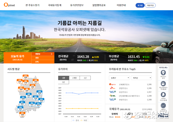25일 한국석유공사 유가정보서비스 오피넷에 따르면 9월 넷째 주 전국 주유소 휘발유 판매 가격은 지난주보다 0.8원 오른 ℓ당 1천642.6원을 나타냈다.