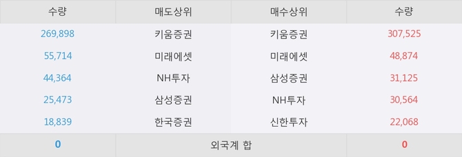 거래원 동향은 미래에셋, 삼성증권, NH투자 등이 매수 상위 목록에 나타나고 있다.