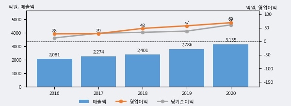 최근 3년간의 실적을 살펴보면 안정적 성장세를 보이고 있다. 최근 3년간 매출로 볼 때 매년 꾸준히 증가하고 있다. 다만 최근에 그 증가폭이 다소 감소하고 있다.