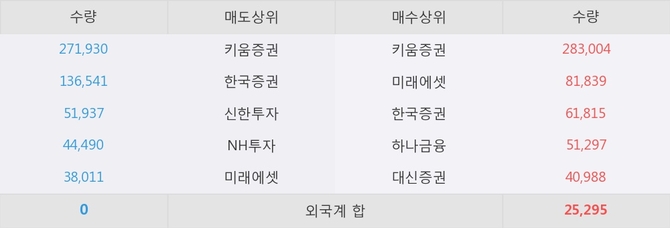 거래원 동향은 미래에셋, 하나금융 등이 매수 상위 목록에 나타나고 있다.