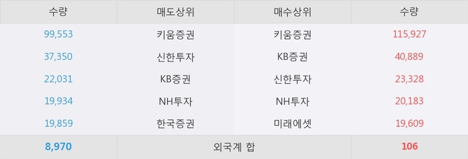 거래원 동향은 NH투자, 미래에셋 등이 매수 상위 목록에 나타나고 있다.