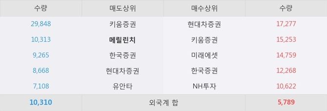 메릴린치가 매도상위 창구 2위를 기록중이고, 그 외에 키움증권, 한국증권 등이 매도 창구 상위에 위치하고 있다.