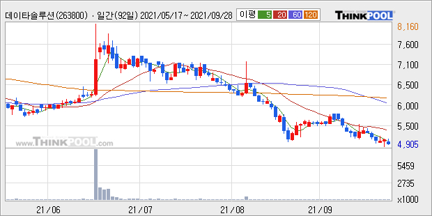 데이타솔루션은 2020년 매출액 927억원과 영업이익 6억원을 기록했다. 전년대비 매출은 -8.3% 하락했고, 영업이익은 25.0% 상승했다. 이 회사의 매출액 증감률과 영업이익 증감률은 각각 코스닥 하위 34%, 상위 29%에 해당된다.