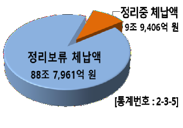 국세청 징수가 실제 이뤄지는 대상인 정리 중 체납액은 9조9406억원(10.1%), 정리보류 체납액은 88조7961억원에 달했다.