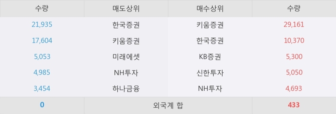 이 시각 주요 거래원은 NH투자, 키움증권, 한국증권 등이 매수 상위 창구에 자리하고 있다.