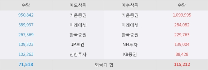 거래원 동향은 미래에셋, NH투자 등이 매수 상위 목록에 나타나고 있다. 한편, 매도 창구 상위에는 JP모건이 눈에 띄고 있다.