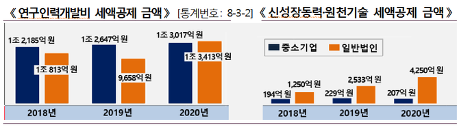 정부는 기업의 자체성장동력과 미래‧원천기술 등 관련해 지원하는 세액공제 비용이 크게 증가했다.