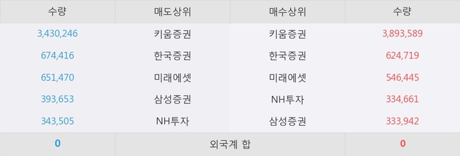 아직까지 외국계 증권사 창구를 통한 매매는 발생하지 않고 있다. 그리고 이 시간 한국증권이 매수창구상위에 올라있는 종목은 이 종목 이외에도 TIGER 200, 서남 등이 있다.