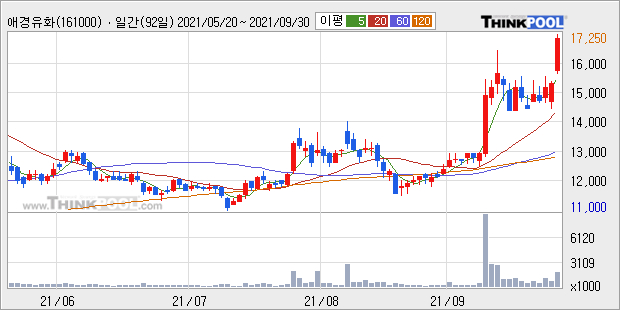 애경유화의 2020년 매출액은 전년대비 -10.6% 줄어든 9088억원이고, 영업이익은 전년대비 22.7% 늘어난 575억원을 기록했다. 이 회사의 매출액 증감률과 영업이익 증감률은 각각 코스피 하위 30%, 상위 37%에 해당된다.