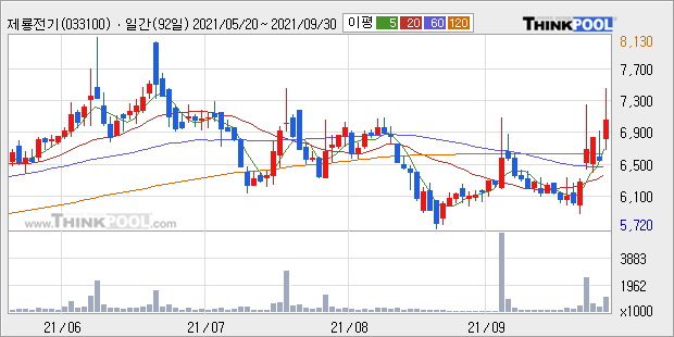 제룡전기의 2020년 매출액은 442억으로 전년대비 -2.2% 하락했고, 영업이익 역시 38억으로 전년대비 -34.1% 하락했다. 이 회사의 매출액 증감률과 영업이익 증감률은 각각 코스닥 하위 45%, 하위 35%에 해당된다.