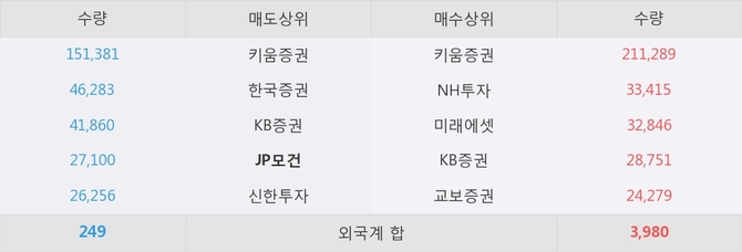 거래원 동향은 NH투자, 미래에셋 등이 매수 상위 목록에 나타나고 있다. 한편, 매도 창구 상위에는 JP모건이 눈에 띄고 있다.