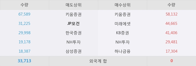 거래원 동향은 JP모건, NH투자, 삼성증권 등이 매도 상위 목록에 나타나고 있다.