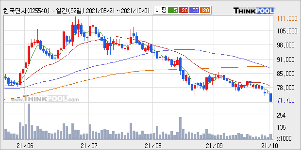 한국단자의 2020년 매출액은 전년대비 3.9% 늘어난 8025억원이고, 영업이익 또한 전년대비 135.7% 늘어난 790억원을 기록했다. 이 회사의 매출액 증감률과 영업이익 증감률은 각각 코스피 상위 31%, 상위 11%에 해당된다.