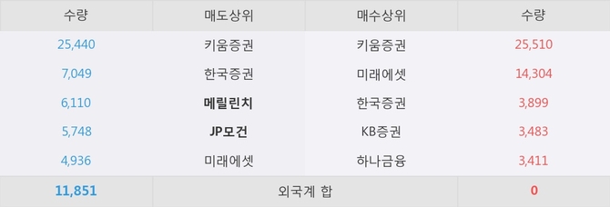 거래원 동향은 미래에셋, 하나금융 등이 매수 상위 목록에 나타나고 있다. 한편, 매도 창구 상위에는 메릴린치와 JP모건이 눈에 띄고 있다.