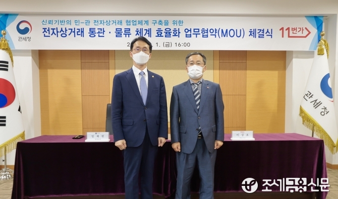 (조세금융신문=김종태 기자) 관세청은 1일 온라인 쇼핑몰 11번가와 전자상거래 통관물류체계 효율화를 위한 업무협약(MOU)을 맺었다.