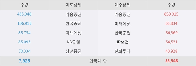 거래원 동향은 JP모건, 미래에셋이 매수 상위 목록에 나타나고 있다.