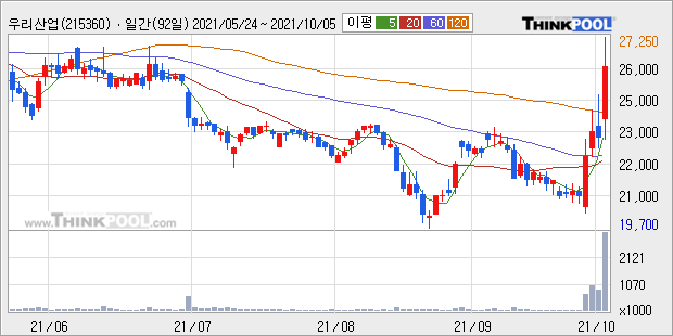 우리산업은 2020년 매출액 2890억원과 영업이익 103억원을 기록했다. 전년대비 매출은 -9.3%, 영업이익은 -26.8% 각각 하락했다. 이 회사의 매출액 증감률과 영업이익 증감률은 각각 코스닥 하위 32%, 하위 38%에 해당된다.