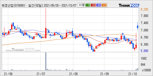 태경산업은 2020년 매출액 4306억원과 영업이익 159억원을 기록했다. 전년대비 매출은 -17.1% 하락했고, 영업이익은 47.7% 상승했다. 이 회사의 매출액 증감률과 영업이익 증감률은 각각 코스피 하위 18%, 상위 27%에 해당된다.