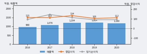 풍국주정의 2020년 매출액은 전년대비 -2.8% 줄어든 1180억원이고, 영업이익은 전년대비 6.0% 늘어난 112억원을 기록했다. 이 회사의 매출액 증감률과 영업이익 증감률은 각각 코스닥 하위 43%, 상위 47%에 해당된다.
