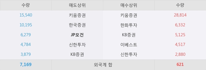 현재 거래원 동향은 키움증권, 한화투자, KB증권 등이 매수 상위 목록에 나타나고 있다. 한편, 매도 창구 상위에는 JP모건이 눈에 띄고 있다.