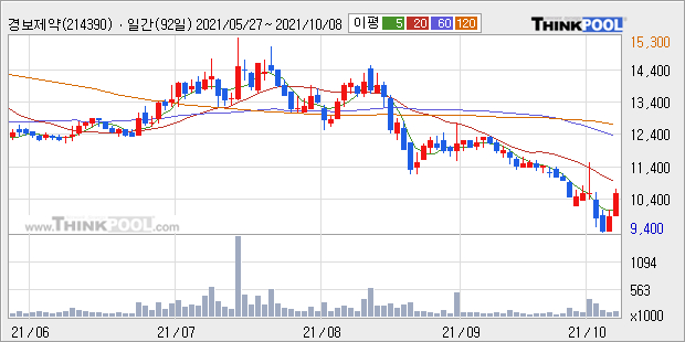 경보제약의 2020년 매출액은 전년대비 12.3% 늘어난 2153억원이고, 영업이익 또한 전년대비 39.9% 늘어난 87억원을 기록했다. 이 회사의 매출액 증감률과 영업이익 증감률은 각각 코스피 상위 16%, 상위 29%에 해당된다.