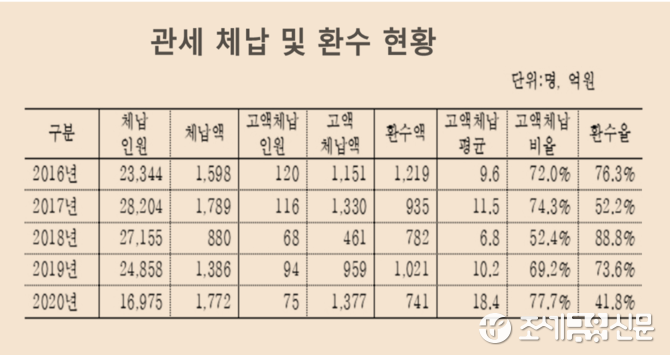 (조세금융신문=김종태 기자) 지난해 관세 체납자 수가 전년보다 줄었지만, 체납액은 30% 가까이 증가한 것으로 나타났다.