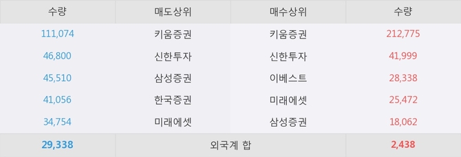 거래원 동향은 미래에셋, 삼성증권 등이 매수 상위 목록에 나타나고 있다.