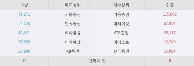 이 시각 주요 거래원은 미래에셋, 키움증권, KTB증권 등이 매수 상위 창구에 자리하고 있다.