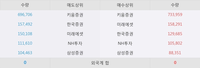 거래원 동향은 미래에셋, NH투자, 삼성증권 등이 매수 상위 목록에 나타나고 있다.