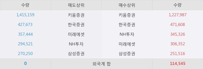 거래원 동향은 NH투자, 미래에셋, 삼성증권 등이 매수 상위 목록에 나타나고 있다.