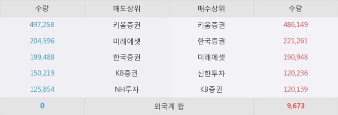 이 시각 주요 거래원은 미래에셋, 키움증권, 한국증권 등이 매수 상위 창구에 자리하고 있다.