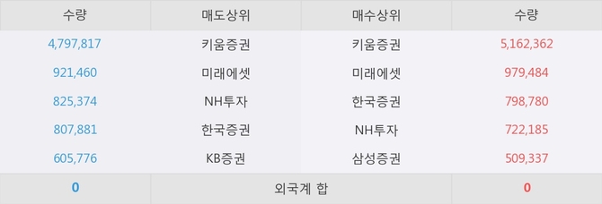 거래원 동향은 미래에셋, NH투자, 삼성증권 등이 매수 상위 목록에 나타나고 있다.