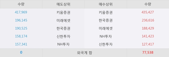 거래원 동향은 미래에셋, NH투자 등이 매수 상위 목록에 나타나고 있다.