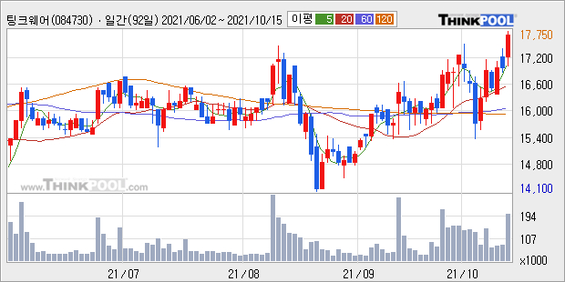 팅크웨어의 2020년 매출액은 전년대비 8.4% 늘어난 1976억원이고, 영업이익 또한 전년대비 59.5% 늘어난 125억원을 기록했다. 이 회사의 매출액 증감률과 영업이익 증감률은 각각 코스닥 상위 37%, 상위 25%에 해당된다.
