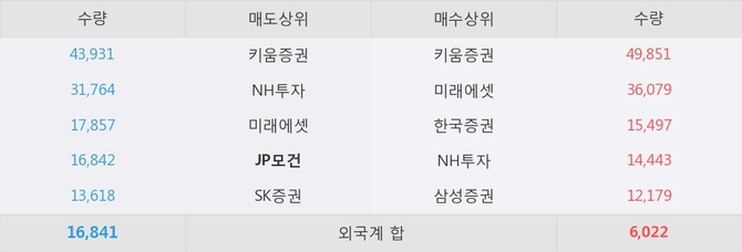 거래원 동향은 미래에셋, NH투자, 삼성증권 등이 매수 상위 목록에 나타나고 있다. 한편, 매도 창구 상위에는 JP모건이 눈에 띄고 있다.