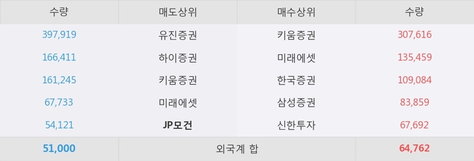 거래원 동향은 JP모건, 미래에셋이 매도 상위 목록에 나타나고 있다.