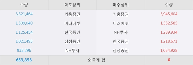 거래원 동향은 미래에셋, 삼성증권, NH투자 등이 매도 상위 목록에 나타나고 있다.