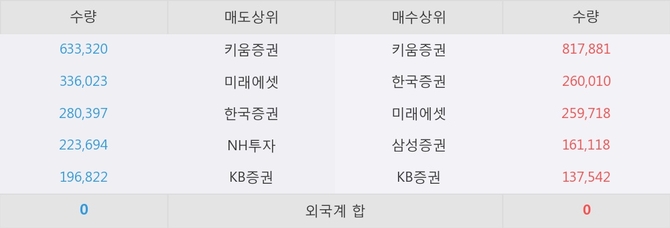 아직까지 외국계 증권사 창구를 통한 매매는 발생하지 않고 있다. 그리고 이 시간 한국증권이 매수창구상위에 올라있는 종목은 이 종목 이외에도 케이씨텍, 신영스팩6호 등이 있다.
