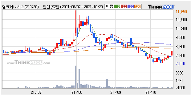 링크제니시스는 2020년 매출액 129억원과 영업이익 28억원을 기록했다. 전년대비 매출은 13.0%, 영업이익은 172.8% 각각 상승했다. 이 회사의 매출액 증감률과 영업이익 증감률은 각각 코스닥 상위 30%, 상위 11%에 해당된다.