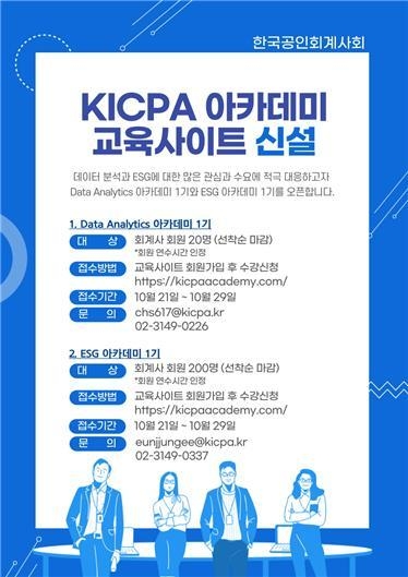 수강신청은 KICPA 아카데미 교육사이트에서 회원가입 후 가능하며, 선착순으로 마감된다. 수강 회원들은 회원 연수시간을 인정받을 수 있다.
