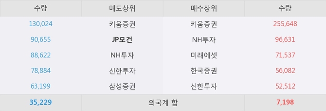 거래원 동향은 NH투자, 미래에셋 등이 매수 상위 목록에 나타나고 있다. 한편, 매도 창구 상위에는 JP모건이 눈에 띄고 있다.